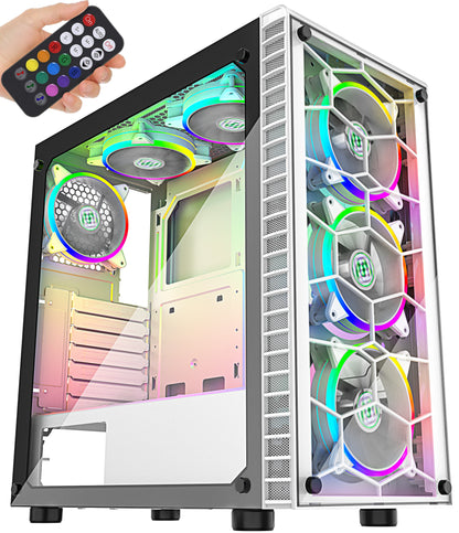 G05MS6-BB MUSETEX 6pcs 120mm ARGB Fans and USB 3.0 ATX Mid-Tower PC Gaming Cases Computer Cases, 2 Tempered Glass Panels, White Mid Tower Computer Chassis(G05MS6-BB)