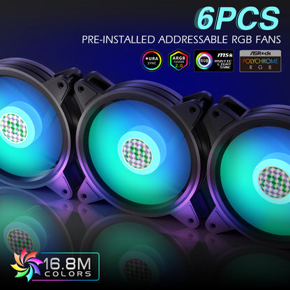 - 【Outstanding Airflow】6pcs 120mm MUSETEX ARGB fans are pre-install for the case to provide lighting and excellent airflow at the same time,keep cooling with the case.